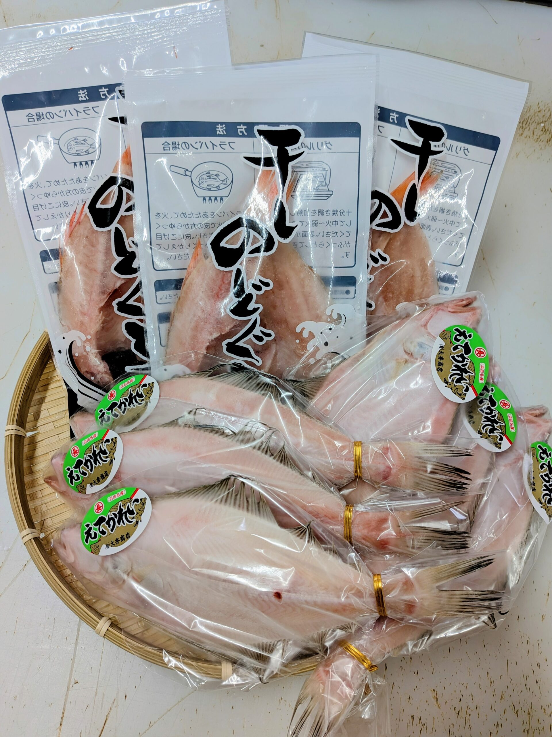 えてかれい100g~130gを6尾、のどぐろ120g~150gを3尾をセットにしました。
